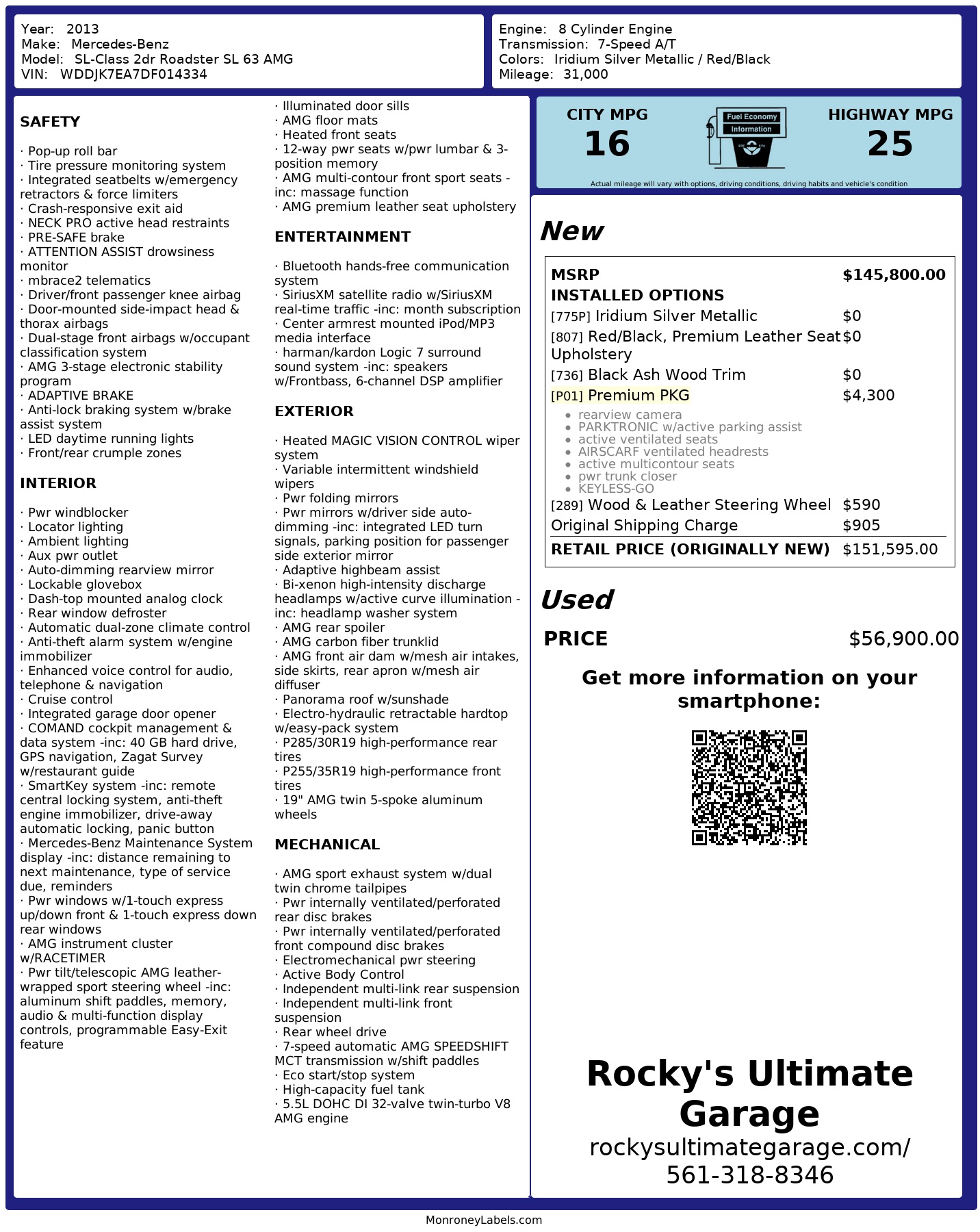 We invite you to call (561) 318-8346 or message us at your best convenience if you have any questions regarding this beautiful 2013 Mercedes Benz SL63 AMG Roadster. We look forward to hearing from you.