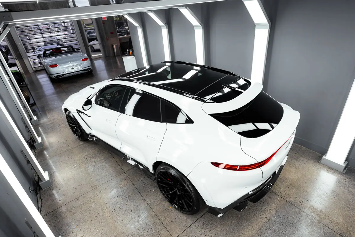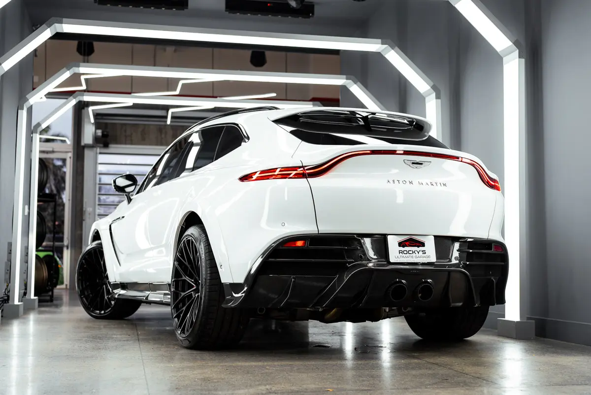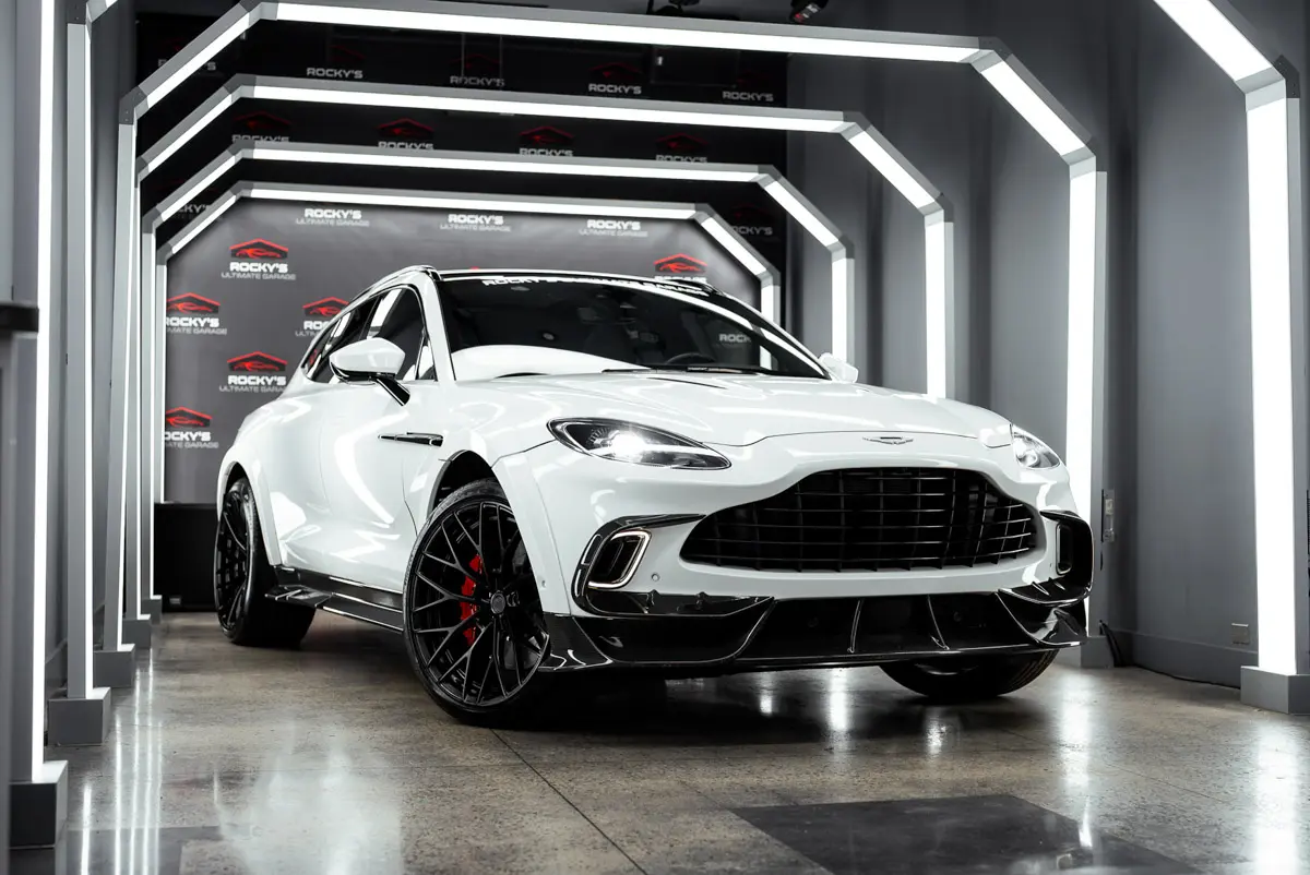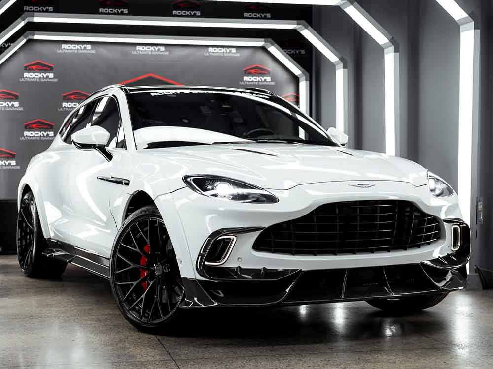 Rocky’s Ultimate Garage is pleased to present this rare Mansory Wide Body 2021 Aston Martin DBX. The Mansory kit was professionally installed and is trimmed with carbon fiber on the splitter, side skirts, and diffuser. Aside from the wide-body kit this DBX is equipped with forged ARNKY wheels, and a Quicksilver exhaust. With a heavy factory MSRP of $195k, this car has great added options from factory such as: Interior Carbon Fiber Trim, Red Stitching, Red Brake Calipers, Dark Chrome Trim, Contrast Stitching, Indulgence and Convenience Pack, 16-way power front seats with memory, heated/ventilated front/rear seats, and acoustic privacy glass for the rear, Auto Park Assist, a Power Tailgate with Gesture Control, and a Touchpad controller. This car comes with a clean carfax and title. Super Rare! Only a handful ever equpped with the Mansory Wide-Body Kit.