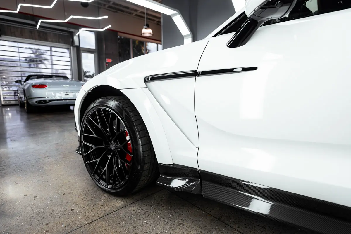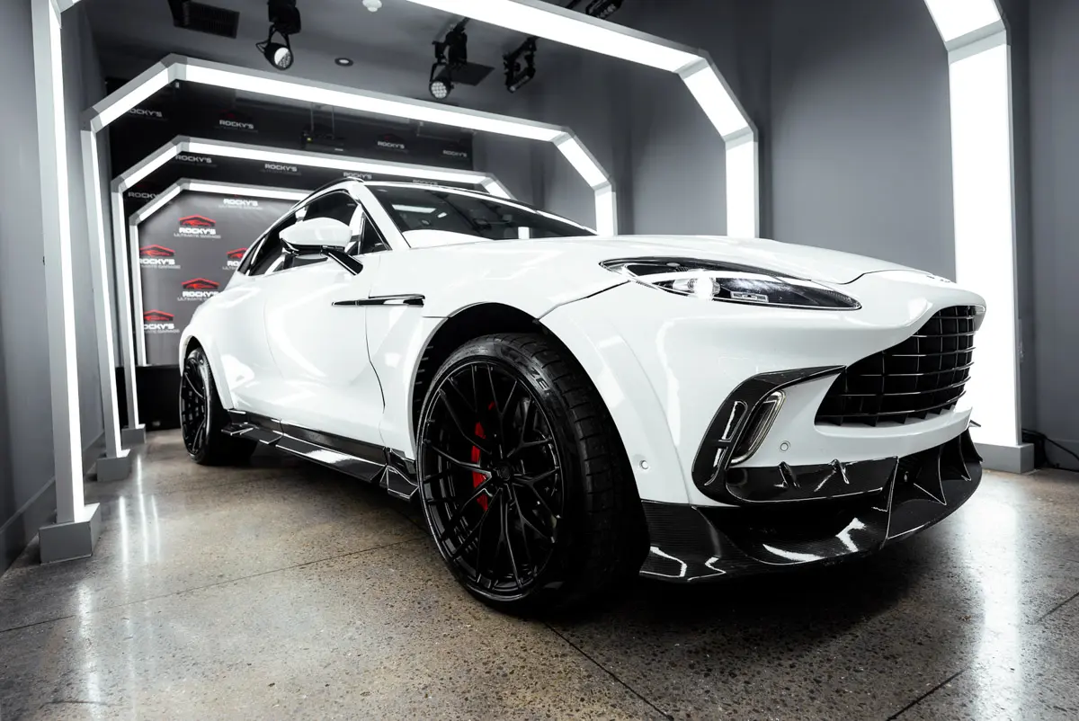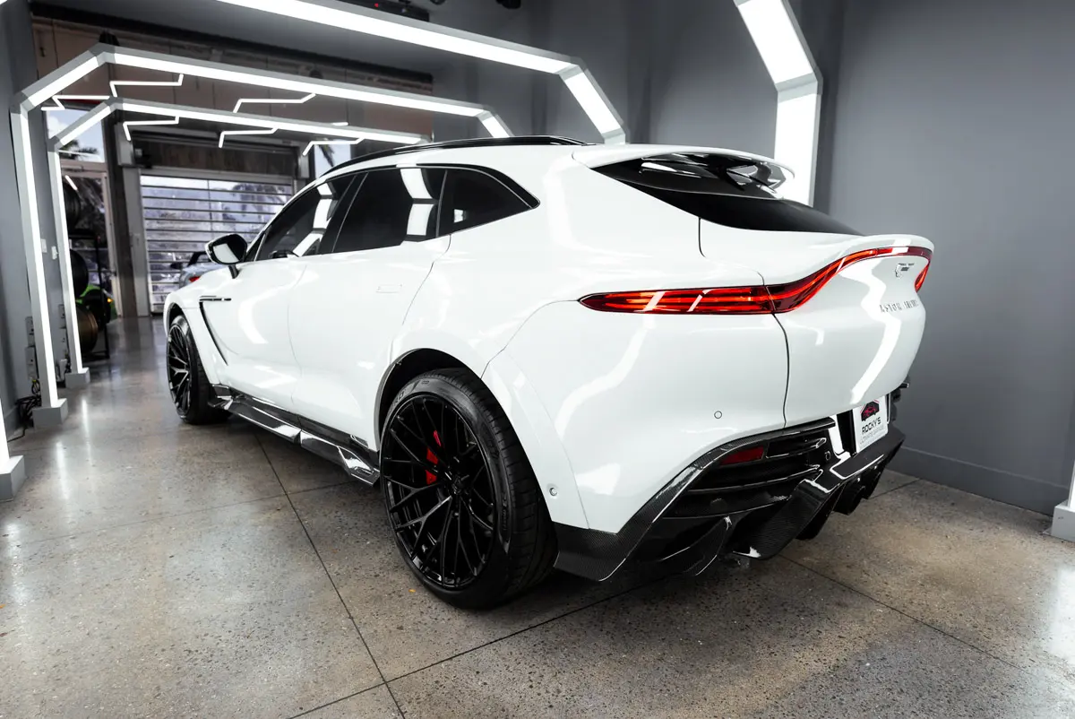 Rocky’s Ultimate Garage is pleased to present this rare Mansory Wide Body 2021 Aston Martin DBX. The Mansory kit was professionally installed and is trimmed with carbon fiber on the splitter, side skirts, and diffuser. Aside from the wide-body kit this DBX is equipped with forged ARNKY wheels, and a Quicksilver exhaust. With a heavy factory MSRP of $195k, this car has great added options from factory such as: Interior Carbon Fiber Trim, Red Stitching, Red Brake Calipers, Dark Chrome Trim, Contrast Stitching, Indulgence and Convenience Pack, 16-way power front seats with memory, heated/ventilated front/rear seats, and acoustic privacy glass for the rear, Auto Park Assist, a Power Tailgate with Gesture Control, and a Touchpad controller. This car comes with a clean carfax and title. Super Rare! Only a handful ever equpped with the Mansory Wide-Body Kit.