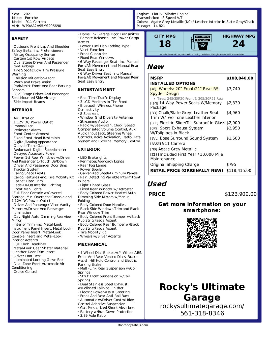 We invite you to call (561) 318-8346 or message us at your best convenience if you have any questions regarding this 2021 Porsche 911 Carrera Coupe. We look forward to hearing from you.